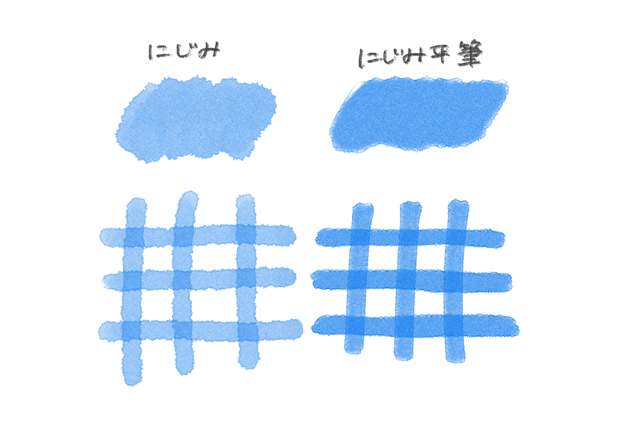 どちらのブラシも、自然な紙のテクスチャを活かしながら重ね塗りができるのが特徴です。