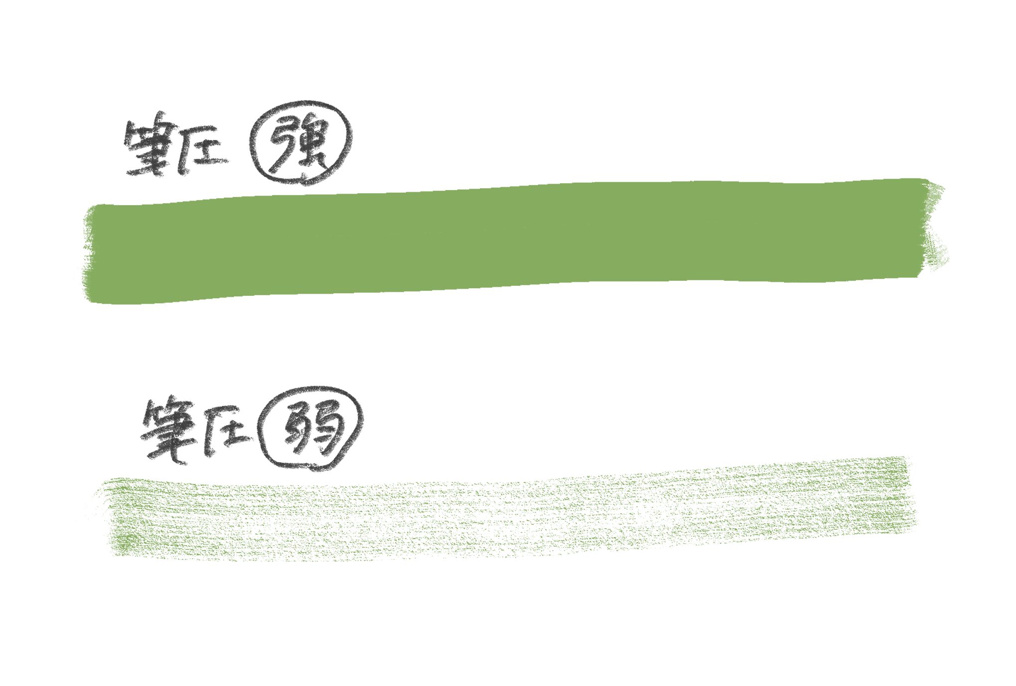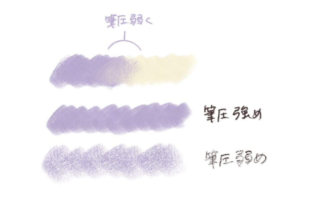 さらに、筆圧によってかすれ具合に変化をつけられるため、質感の違いをこれ一本で表現することができます。