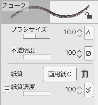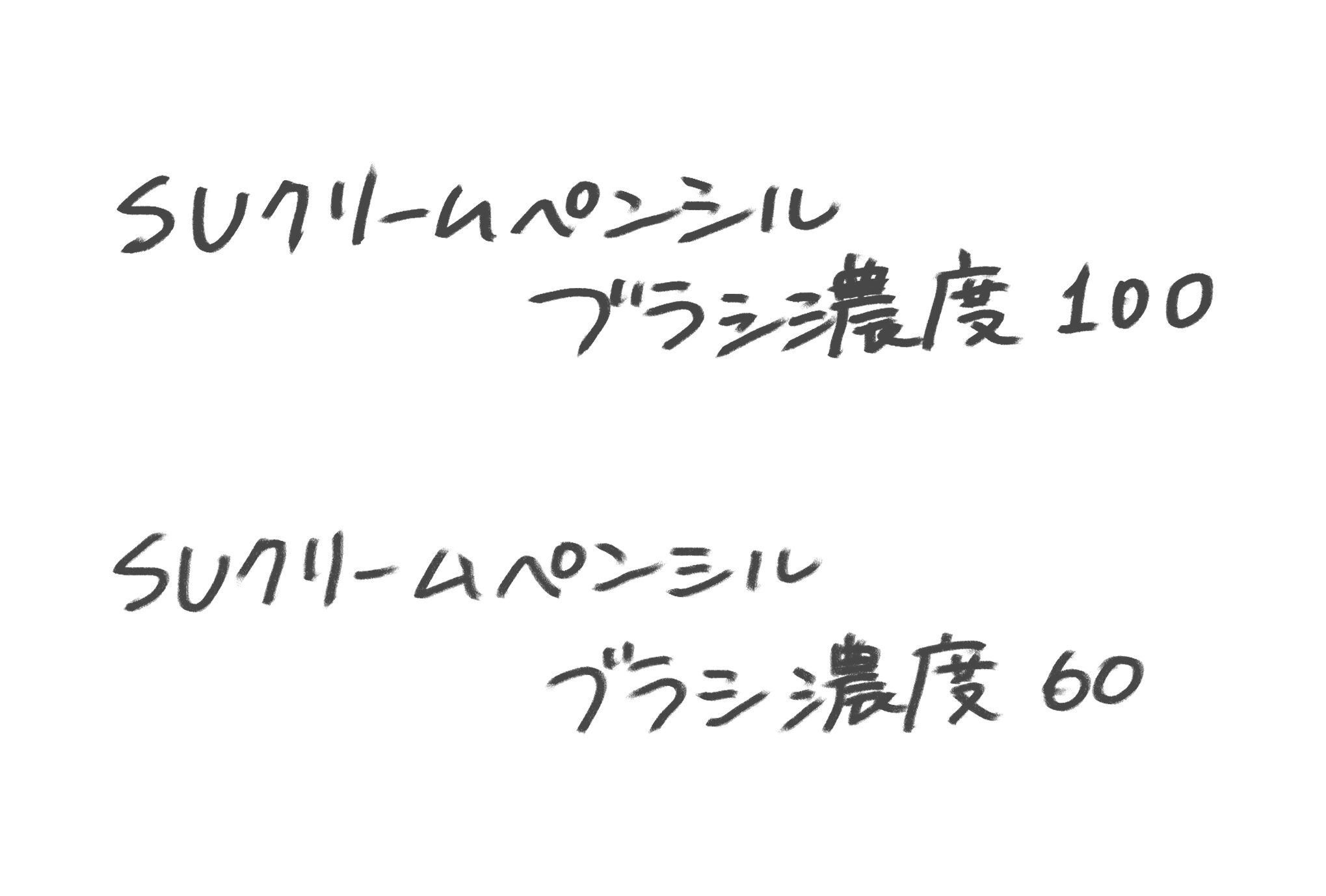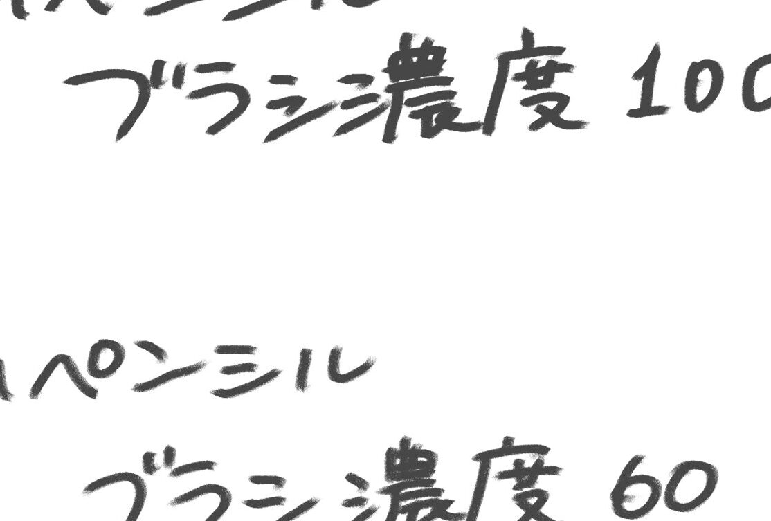 カスタムはほとんど行っていませんが、ブラシ濃度を60%前後に調整すると、さらに鉛筆のようなリアルな柔らかさと、かすれ具合にすることができます。