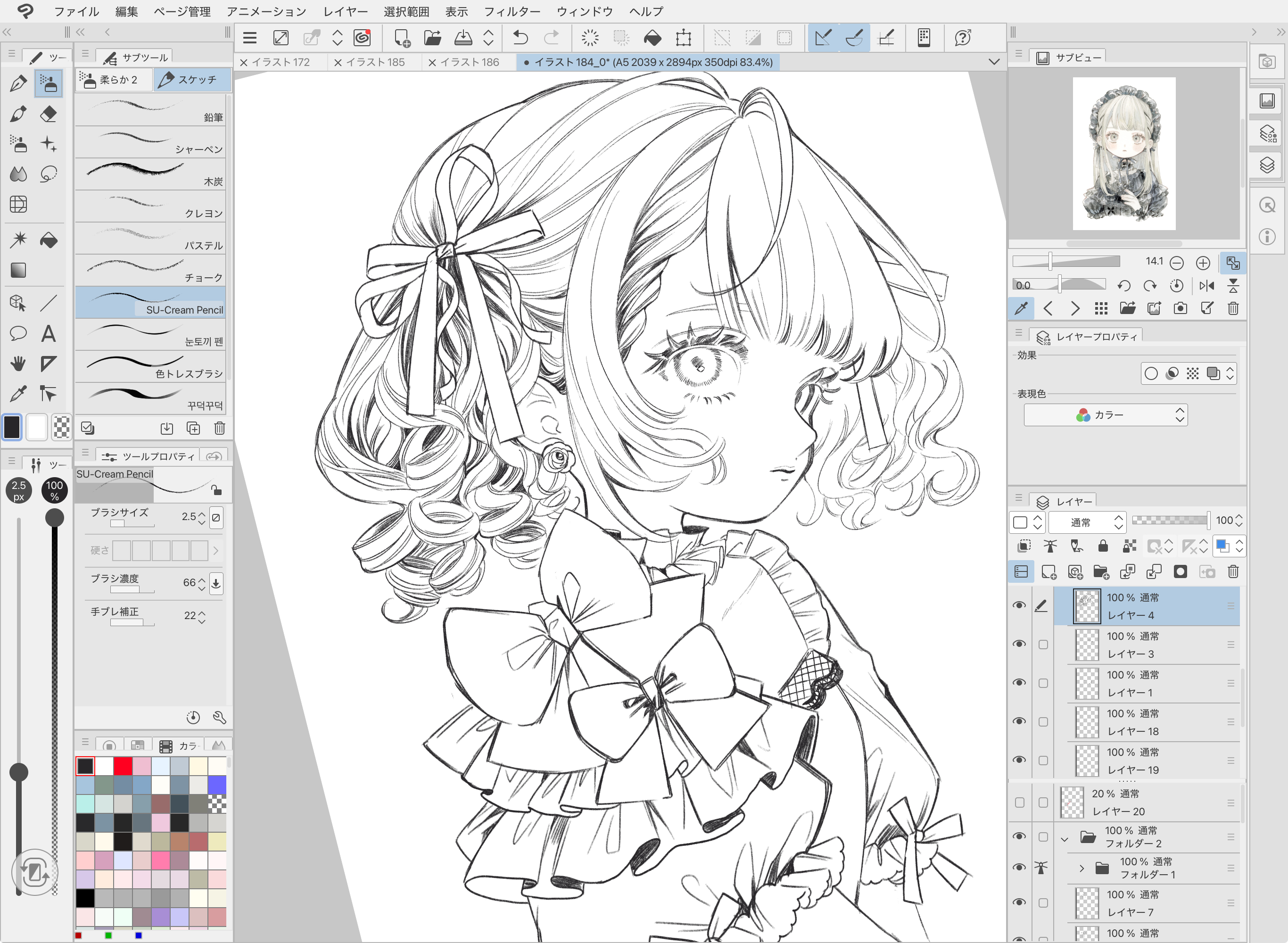 落書きから清書、色塗り時のハイライトや細かい加筆まで幅広く対応できます。