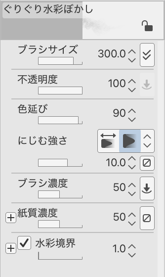 水彩境界の設定を調整することで、より自然なにじみ表現に仕上げることができます。